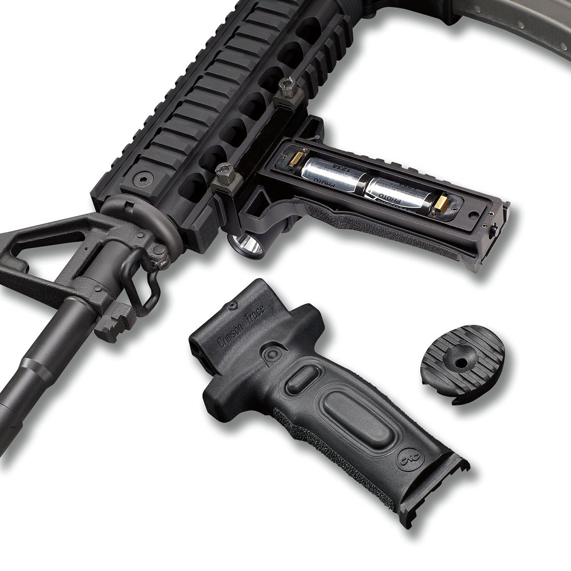 Green just got good™. Crimson Trace presents the MVF-515 Green; a revolutionary, patent-pending concept that combines three tactical tools for your AR style rifle into a single modular package. With a rock-solid 6061-T6 aircraft aluminum hard-anodized tang as the foundation of the foregrip, the unit also features a green laser sight and a 150/200-Lumen LED light module. The MVF-515 Green leverages advanced technology to ensure long battery life and rugged durability through a wider range of conditions than consumer grade green lasers. Hot or cold, light or dark, the MVF-515 Green readily provides the most complete sighting and target identification system available anywhere. The laser and light are instinctively activated as you hold the weapon, and activation switches are ambidextrous. This allows operators to select the light or the laser individually or simultaneously. Both laser and light functions are programmable with three illumination modes to select from including: independent momentary, strobe or constant beam. A master on/off switch permits complete shutdown of either laser or light. Being a modular unit, users may separately purchase a red laser module for direct replacement.